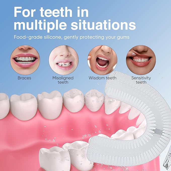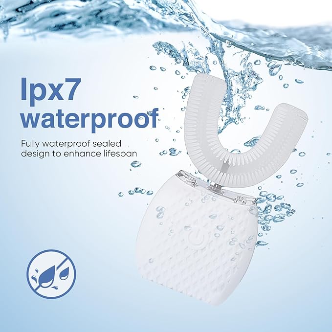Experience a revolutionary clean with our 360° U-Shaped electric toothbrush, designed for complete tooth coverage and powered by advanced blue light whitening technology.